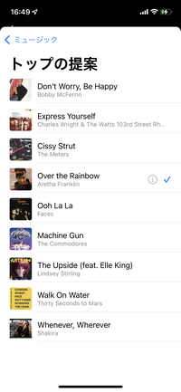 新しく開いた画面で音符マークをタップすると曲を変更できます。iOS15以降からApple Musicのどんな曲でも選べます。