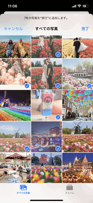 - 追加したい写真を選択してから、「完了」をタップしてください。
